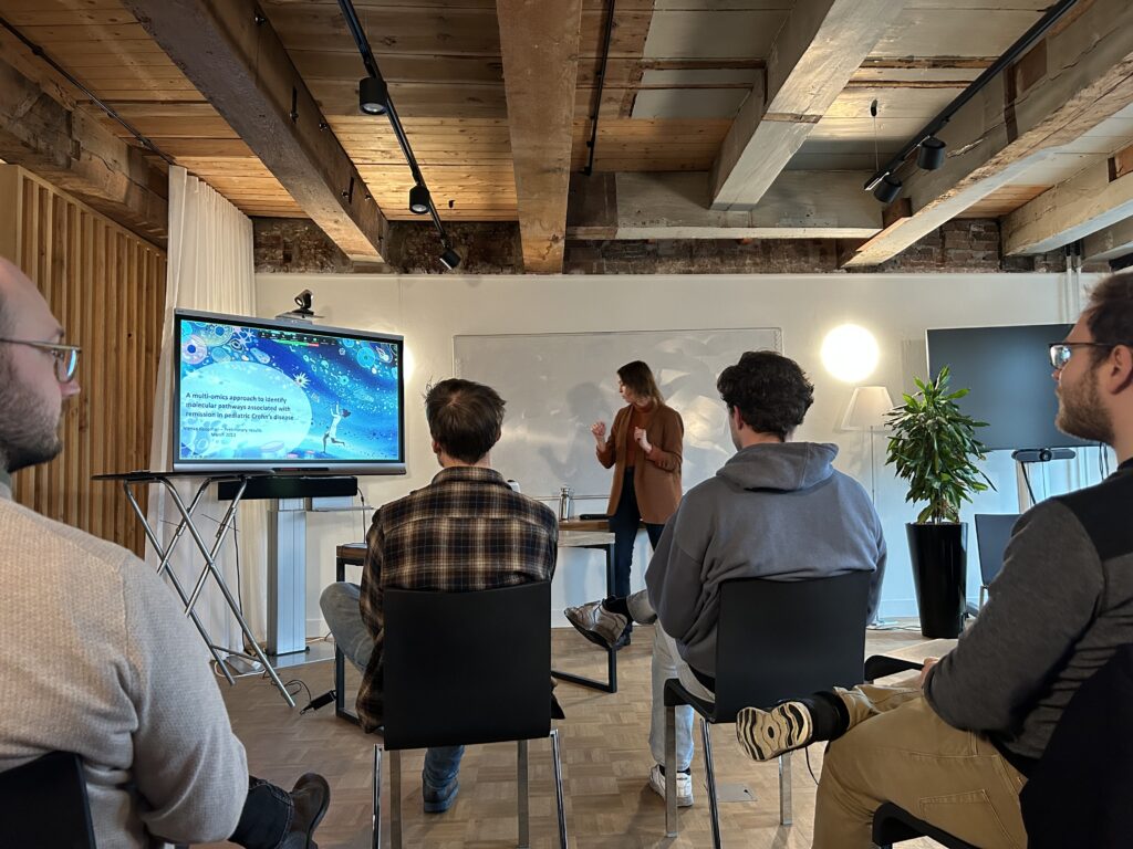 Besides our guest presentation our colleague from UvA PhD-candidate and peer within the RPA community, Nienke Koopman, presented her research entitled “A multi-omics approach to identify molecular pathways associated with remission in pediatric Crohn’s disease”. Nienke was also happy to answer the questions from the group afterwards.